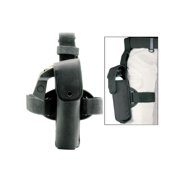 D’une solidité absolue, le porte-aérosol de cuisse est prévu pour des bombes de défense de grande capacité (300 et 500 millilitres). Léger, réglable et articulé il se fait très discret sur son porteur même en cas de mouvement rapide et s’ouvre très facilement pour une prise en main instantanée.