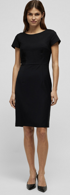 Coupe moderne, encolure bateau, doublure élastique, fente d’aisance au dos, longueur taille 36 : 94 cm