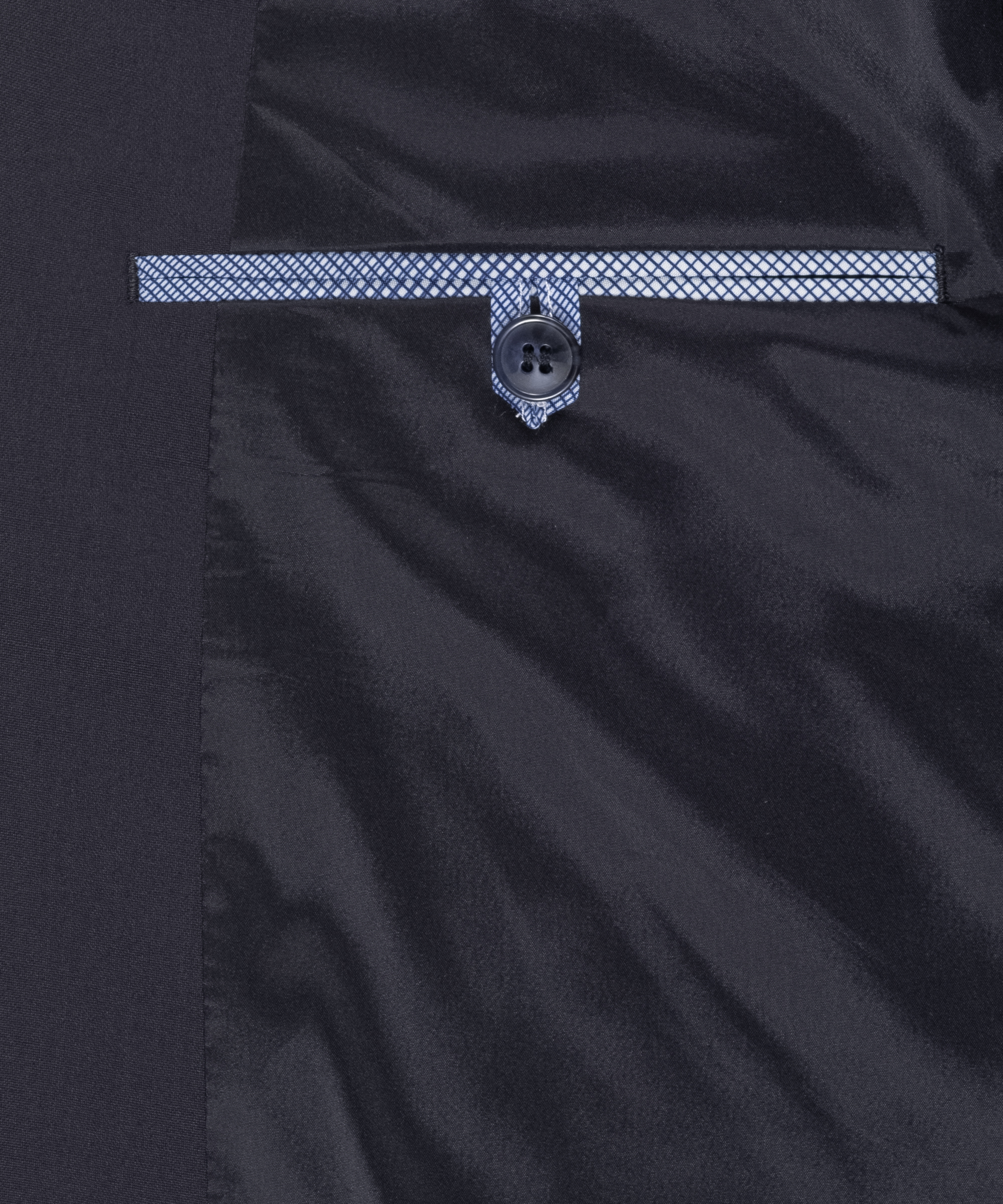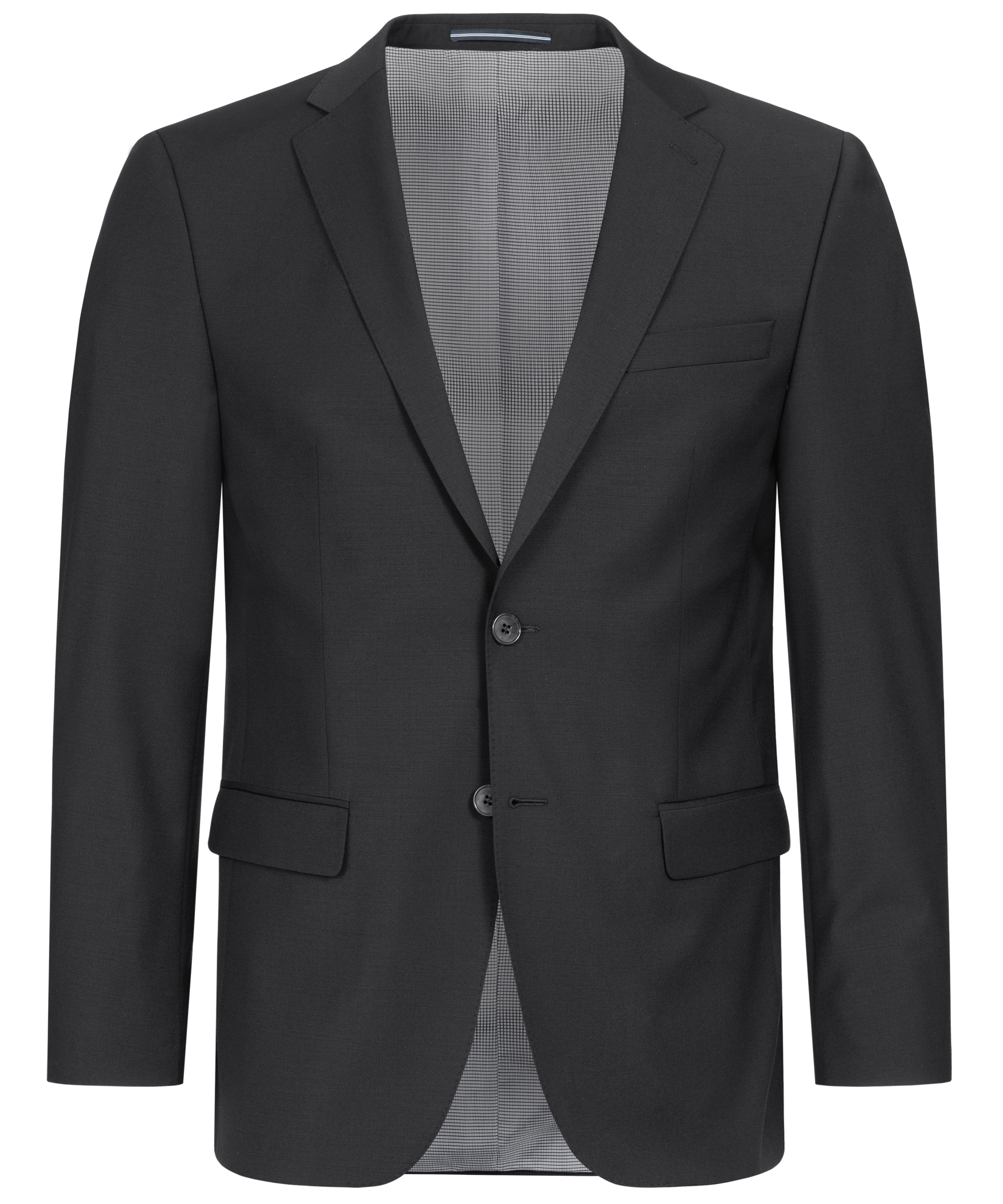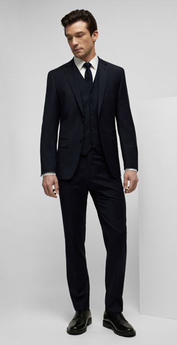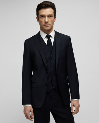 Coupe moderne, deux boutons, revers tombant, doublure élastique contrastée, surpiqûres AMF, deux poches à rabat, une poche gilet au niveau de la poitrine, quatre poches intérieures fonctionnelles, fente au bas de la manche avec boutonnière, deux fentes latérales, longueur dos : 74 cm | taille 50