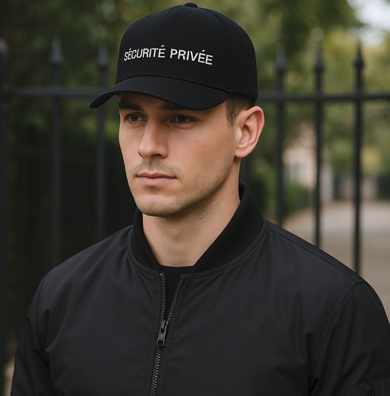 Casquette professionnelle destinée aux agents de sécurité privée, agents cynophiles, SSIAP et opérateurs de surveillance.