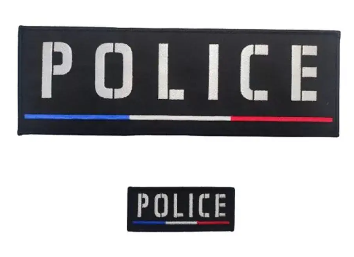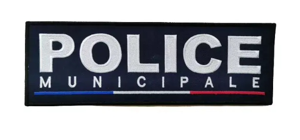 12,49 € HT (14,99 € TTC)Jeu de bande fond bleu marine avec broderie blanche Police Municipale et liseré de pourtour noir.