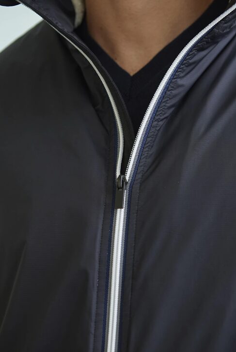 Ouverture principale avec fermeture éclair en nylon bidirectionnelle et ruban contrastant