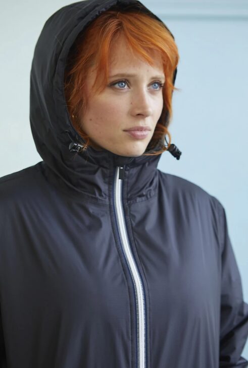 Coutures rubanées à la capuche, aux épaules et aux manches pour garantir l’imperméabilité