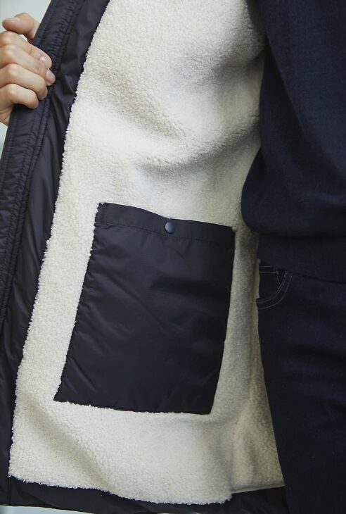 Poches latérales avec passepoils et doublure chaude en polaire blanc cassé