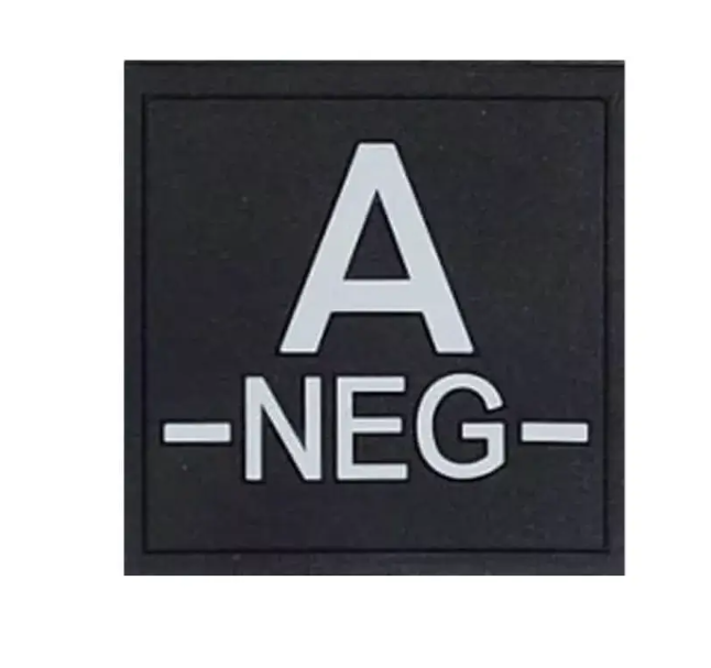 3,99 € HT (4,79 € TTC)Grade poitrine groupe sanguin noir brodé sur tissu, velcro mâle A – Négatif