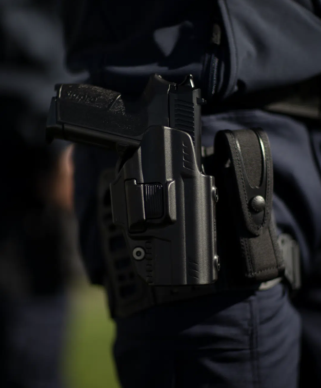 Son système de rétention intégré maintient votre arme fermement en place tout en garantissant un dégainage fluide et naturel. Il suffit d’un simple appui du doigt sur le bouton poussoir, idéalement positionné pour une réactivité maximale.