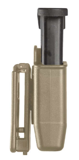Livré avec un adaptateur spécial pour insérer un chargeur fin à munitions verticales type GLOCK 26/43… et une fixation pour ceinture/ceinturon (60 mm) 8K82