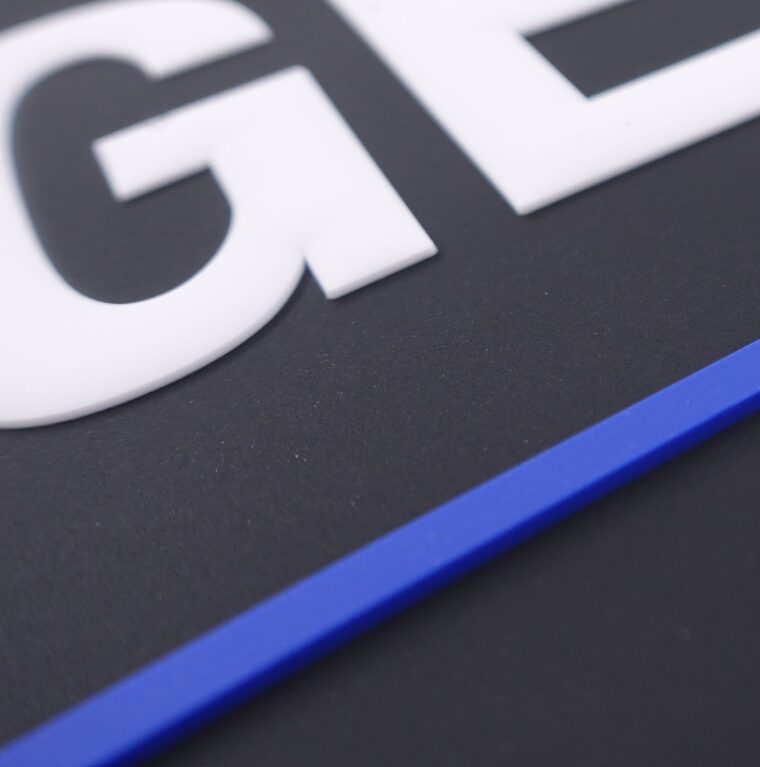 – Couleur : fond noir lettres blanches