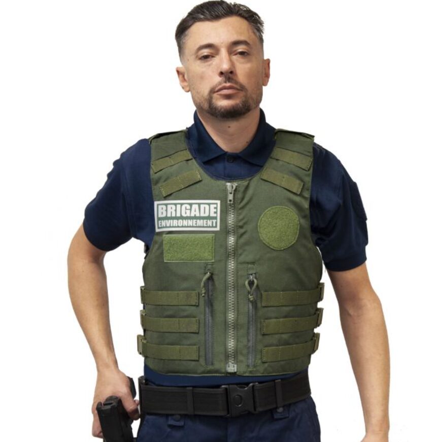 Marquage rétro-réfléchissant « Brigade Environnement » au cœur et dans le dos.