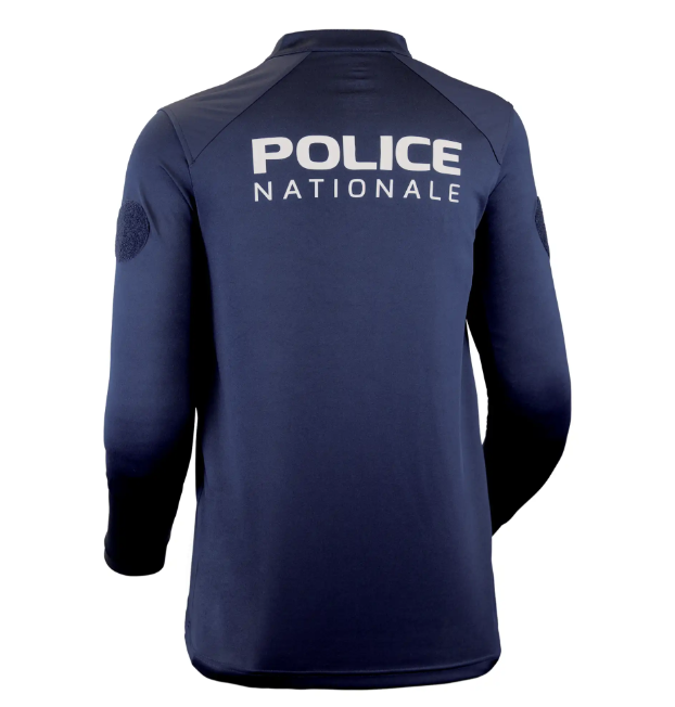 Il se distingue par son ouverture col zippée qui facilite l’habillage et garantit un port ajusté tout au long de la journée. Sur la poitrine, le logo POLICE NATIONALE, tandis que le dos arbore l’inscription POLICE NATIONALE bien visible, assurant une identification immédiate.