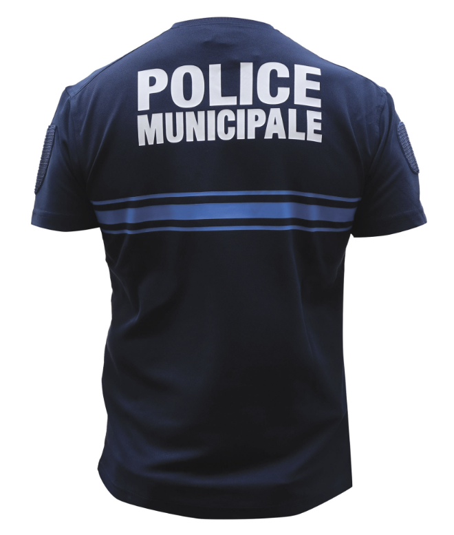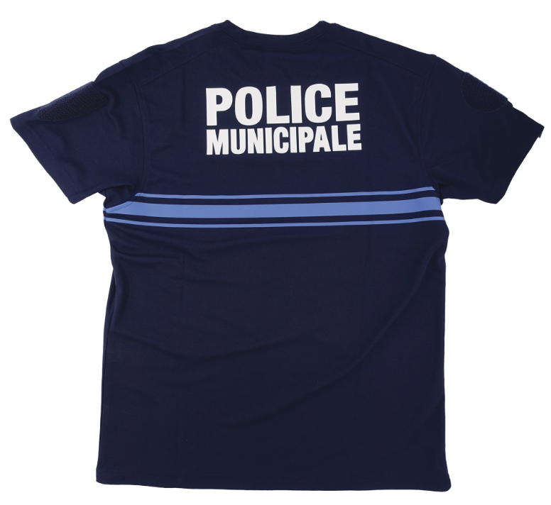 – 2 marquages silicone POLICE MUNICIPALE couleur blanc et bandes en bleu gitane : face et dos.